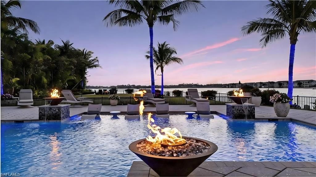 --Exceptional waterfront estate on nearly one acre in Miromar Lakes, offering breathtaking lake views, stunning sunsets, and the ultimate in luxury living.-- Perfectly positioned on one of the community’s most coveted homesites, this extraordinary residence features 4 bedrooms, 6 bathrooms, multiple living areas, and walls of glass that fill the home with natural light while showcasing the spectacular waterfront setting. Designed for both everyday comfort and grand entertaining, the outdo...--Exceptional waterfront estate on nearly one acre in Miromar Lakes, offering breathtaking lake views, stunning sunsets, and the ultimate in luxury living.-- Perfectly positioned on one of the community’s most coveted homesites, this extraordinary residence features 4 bedrooms, 6 bathrooms, multiple living areas, and walls of glass that fill the home with natural light while showcasing the spectacular waterfront setting. Designed for both everyday comfort and grand entertaining, the outdoor living is nothing short of spectacular with a resort-style pool and spa, fire and water features, custom putting green, fire pit, multiple covered seating and dining areas, and a fully equipped summer kitchen. Inside, the gourmet kitchen is a true centerpiece with top-tier appliances, custom cabinetry, walk-in pantry, and an oversized island opening to the great room and dining area. The luxurious owner’s suite is a private retreat with serene water views, spa-like bath with soaking tub, dual vanities, oversized walk-in shower, and spacious dual closets. Additional highlights include a private office, full-house generator, and a 5-car garage with lift accommodating up to 6 vehicles. Enjoy the unparalleled Miromar Lakes lifestyle with 700 acres of freshwater lakes, 3 miles of private white-sand beach, boating, water sports, championship golf, tennis, pickleball, fitness, spa, dining, and a vibrant social scene. A rare opportunity to own one of Miromar Lakes’ most impressive waterfront properties.